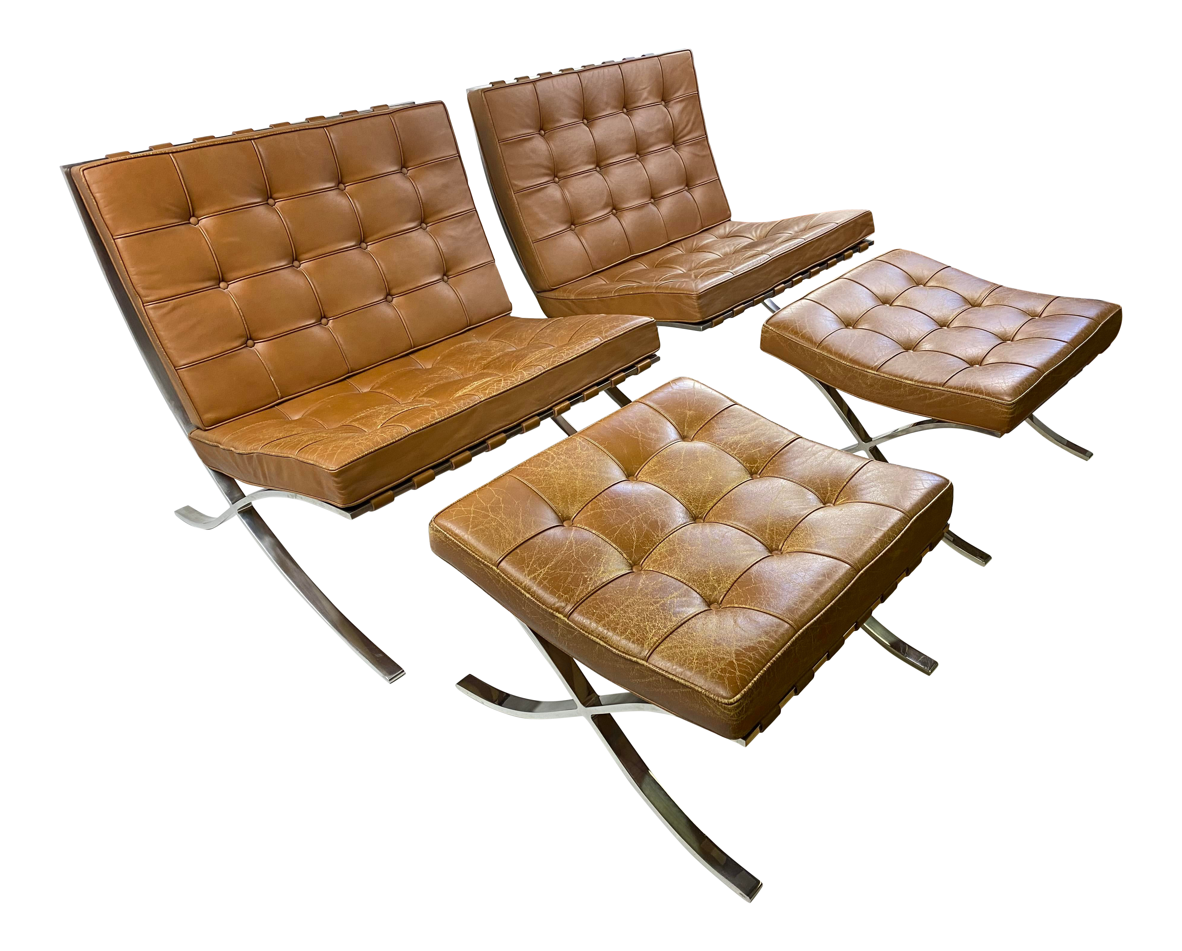 Designed 1929 this example 1953. This pair of chairs and single ottoman later knoll productions feature hand. Knoll studio mies van der roheleather comes from a single cspinneybeck ivory volo cow hide. The barcelona chair is a chair designed by mies van der rohe and lilly reich for the german pavilion at the international exposition of 1929 hosted by barcelona catalonia spain.