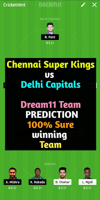 Chennai super kings vs delhi capitals dream11 team check my dream11 team best players list of csk vs dc dream11 csk vs dc match ipl 2020 chennai super kings dream 11 team player list delhi.