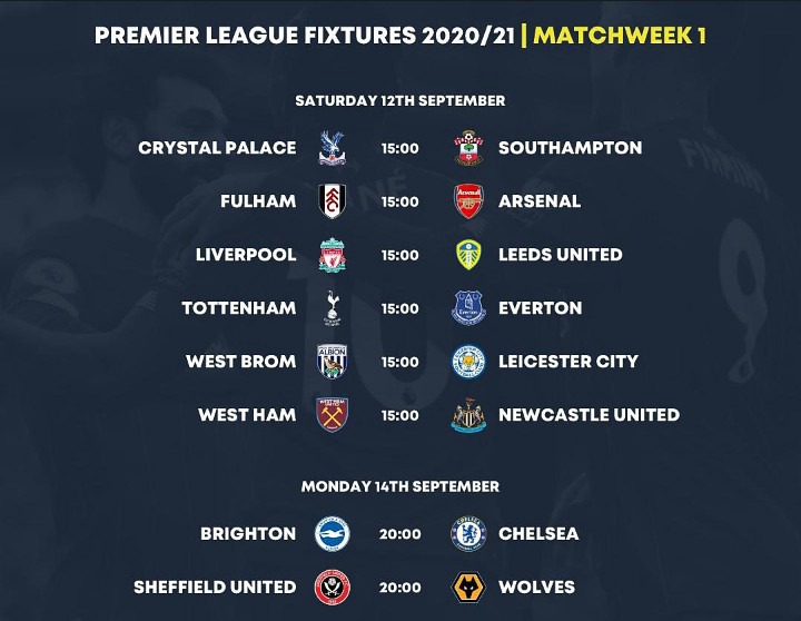 The premier league fixtures for the 202021 season finally released. Scroll down to read the full fixture schedule for the premier league 2020 21 season. The premier league 2020 21 season is scheduled to end on sunday may. Saturday 12 september matchweek 2.