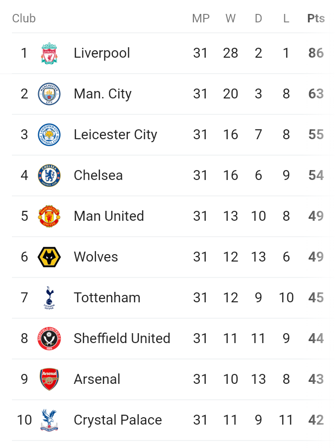 Epl table 2020 latest news today. Home away attack defense. Crystal has four wins one loss in their last five games. The english premier league results delivers a single game this monday crystal palace vs burnley 2020 live score results below. Check the latest points table after the match no.