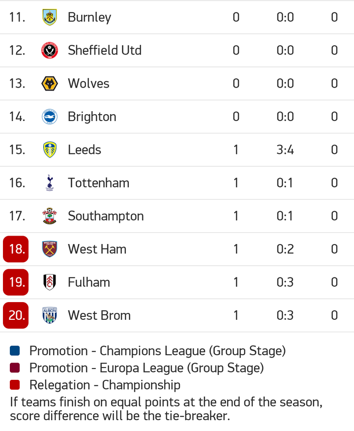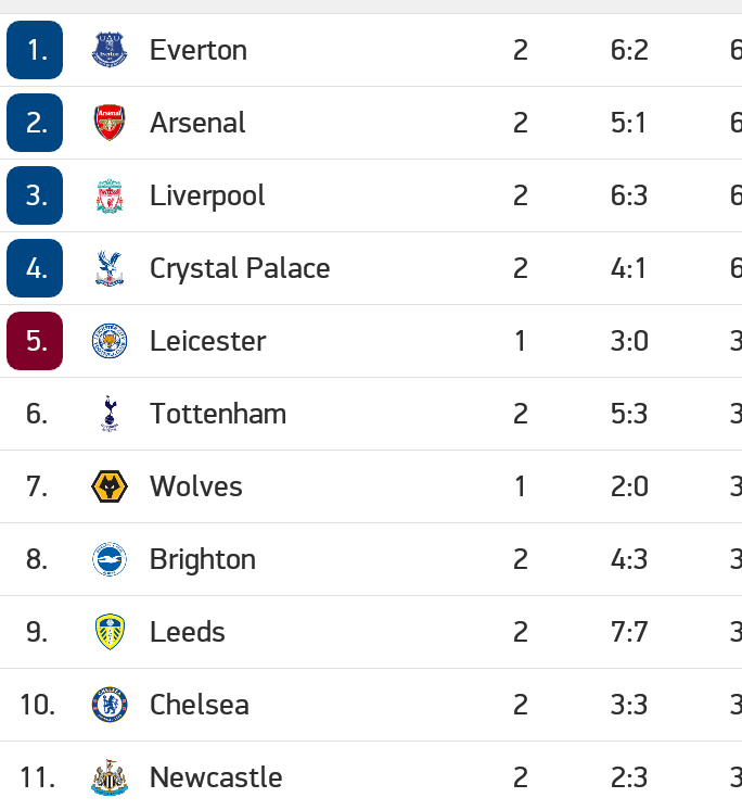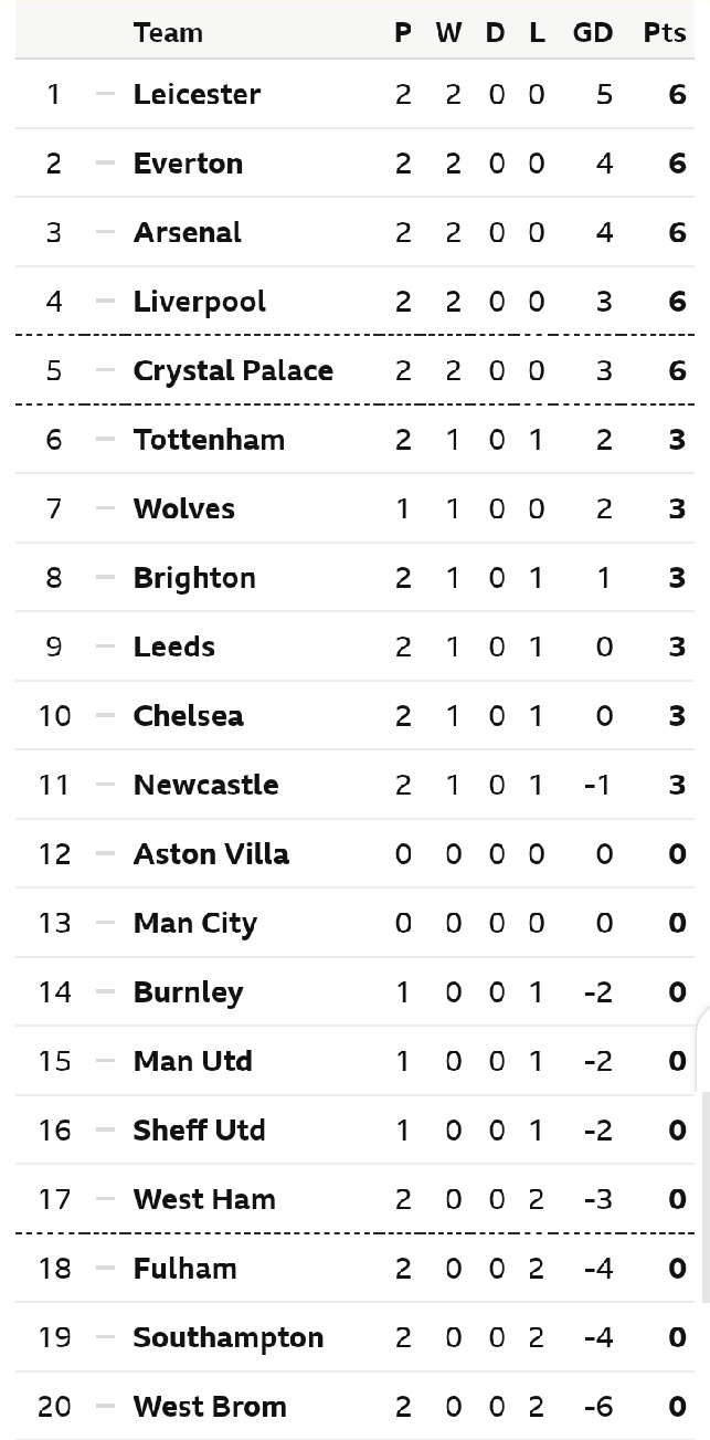 Epl table and fixtures tomorrow. Check premier league 20202021 page and find many useful statistics with chart. Team p w d l f a gd pts form. W won 1 0 against tottenham hotspur on september 13th 2020. Table toppers everton will test their perfect start to the season with their.