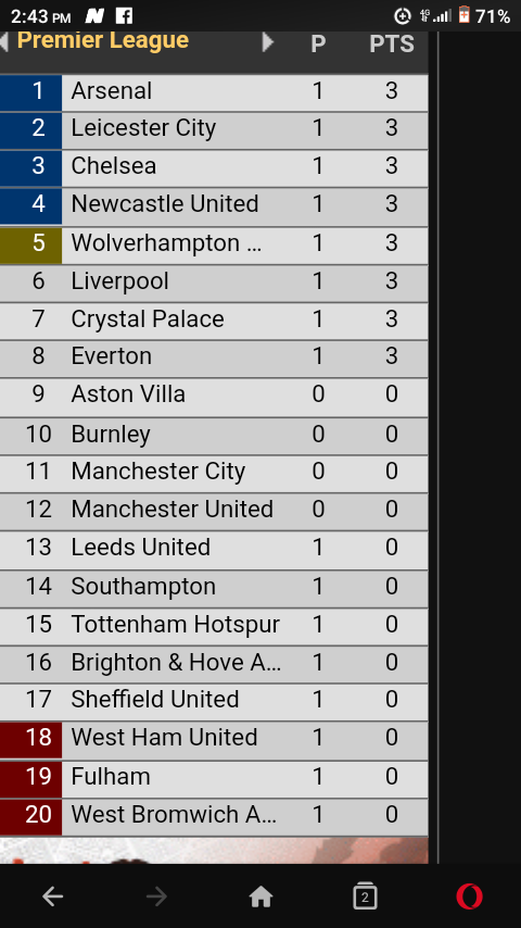 3 previous position 1. Complete table of premier league standings for the 20202021 season plus access to tables from past seasons and other football leagues. Arsenal 4 3 9. Wolves 1 2 liverpool week 24 fixture.