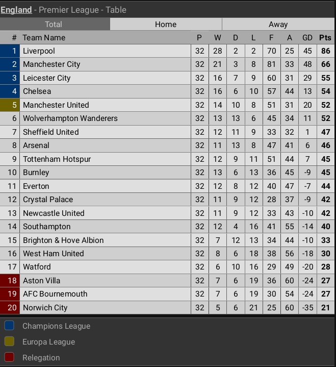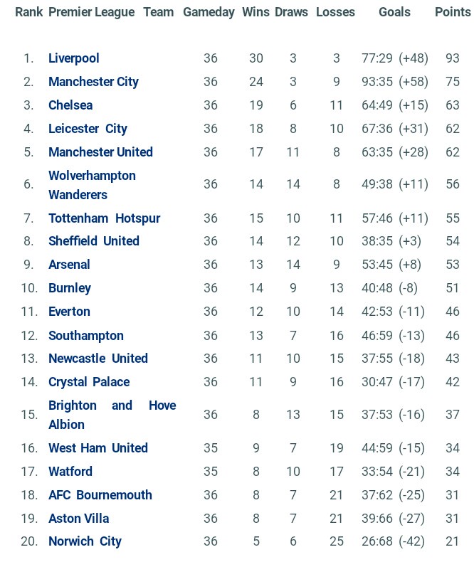 Epl table and fixtures. Find premier league 20202021 table homeaway standings and premier league 20202021 last five matches form table. This abridged table charts the premier league teams. 2 previous position 4. 1 previous position 3.