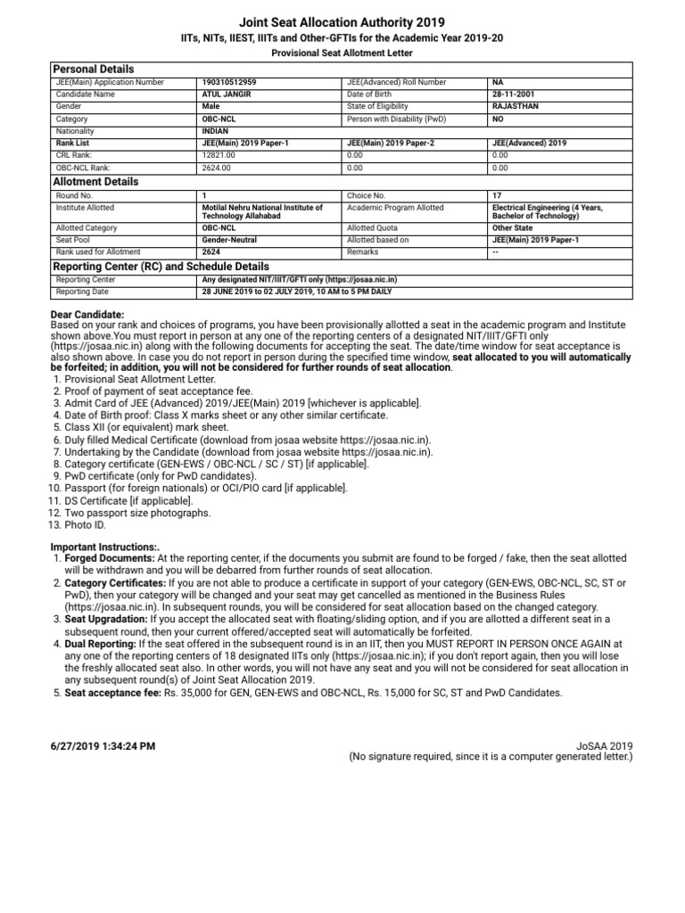 Certificate for persons with disabilities pwd if applicable. Is date of birth certificate and look medical certificate is mandatory for josaa counseling 2020. Joint seat allocation authority jossa will conduct the counselling for josaa 2020 for all eligible candidates who will qualify in jee main or jee advanced 2020 for the admissions in participating institutes. Should i produce the latest obc ncl certificate at time of reporting.