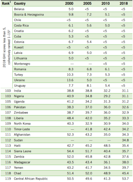 The ghi ranks countries on a 100 point scale with 0 being the best score no hunger and 100 being the worst. The international food policy research institute ifpri calculates the ghi scores each year to assess progress or the lack thereof in combating hunger. The 2019 global hunger index report has been released. Nutritional security requires measures to improve protein and vitamin deficiencies.