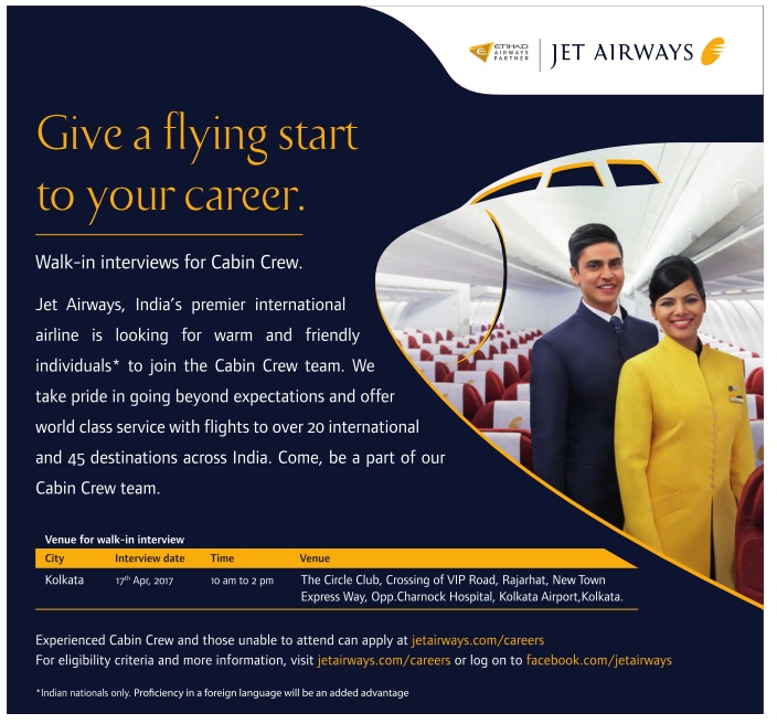 Diploma degree holder are welcomed to apply. Certificate course in air hostessflight purser. Those who are interested to apply for jet airways cabin crew recruitment should ensure their eligibility conditions as per jet airways notification. Eligibility criteria for jet airways cabin crew recruitment 2020 walk in interview educational qualification.