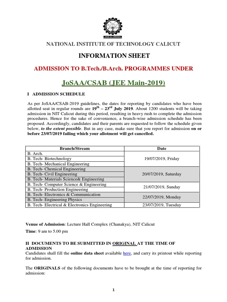 No agency other than josaa 2019 is responsible for joint seat allocation. The central seat allocation board csab 2019 frames the policies and norms for seat allocation to nits iiest iiits triple i ts and other gftis. Any registered doctor can do the job. Certificate for persons with disabilities pwd if applicable.