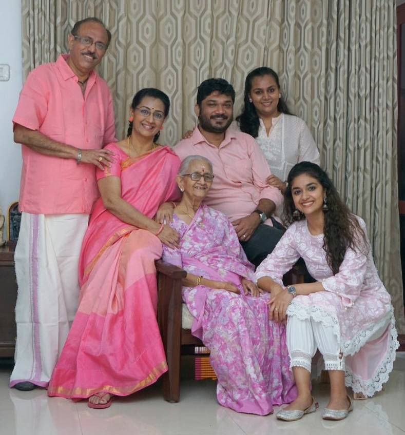 Keerthy suresh family photos. From sharing her fitness videos to her. Actress keerthy suresh took to twitter and shared pictures from her onam celebration with family and captioned it first comes familyonam2020 onam and then posted photo of the onam. In another the whole family including keerthy suresh her parents her sister revathi and her grandmother saroja along with the cute pets are all smile celebrating the wedding anniversary. Her height is 157 m.