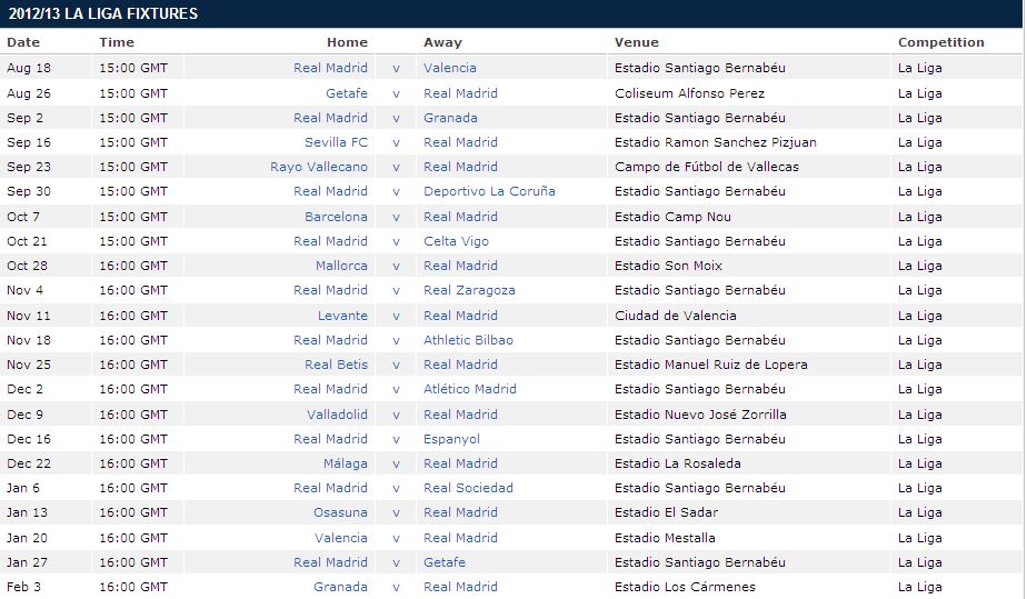 La Liga Table 2012