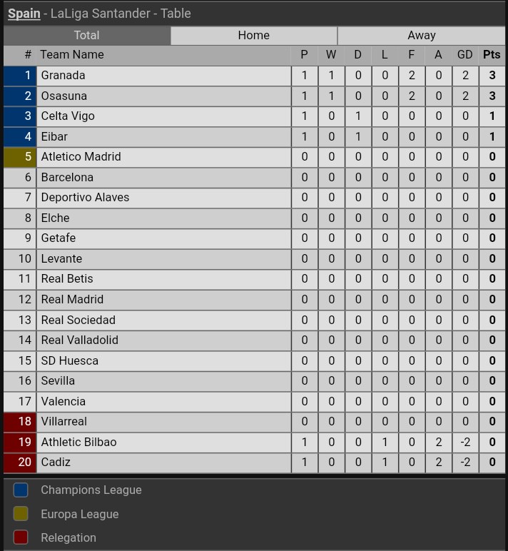 Laliga table 2021. Find laliga 20202021 table homeaway standings and laliga 20202021 last five matches form table. The season began on 12 september 2020 and is scheduled to end on 23 may 2021. Home away attack defense. D drew 0 0 against real sociedad on.