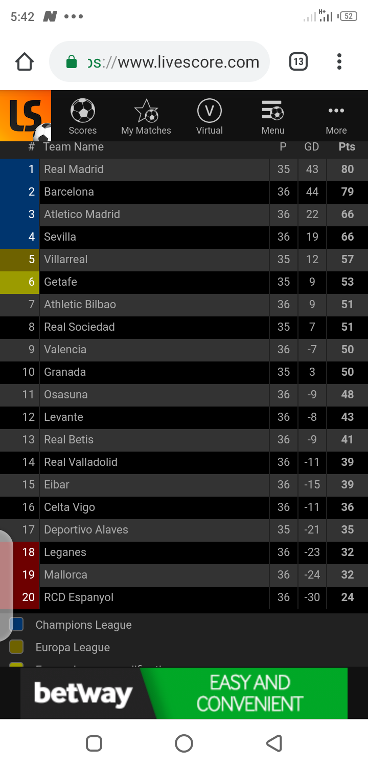 Laliga table point. Just use the table menu which is divided into sections table odds form goals matches. The links in the league standings above allow displaying results and statistics for each team like real madrid stats or real betis stats and the links below provide access to la liga stats and tables. D drew 0 0 against real sociedad on. We are not limited only to the above data.