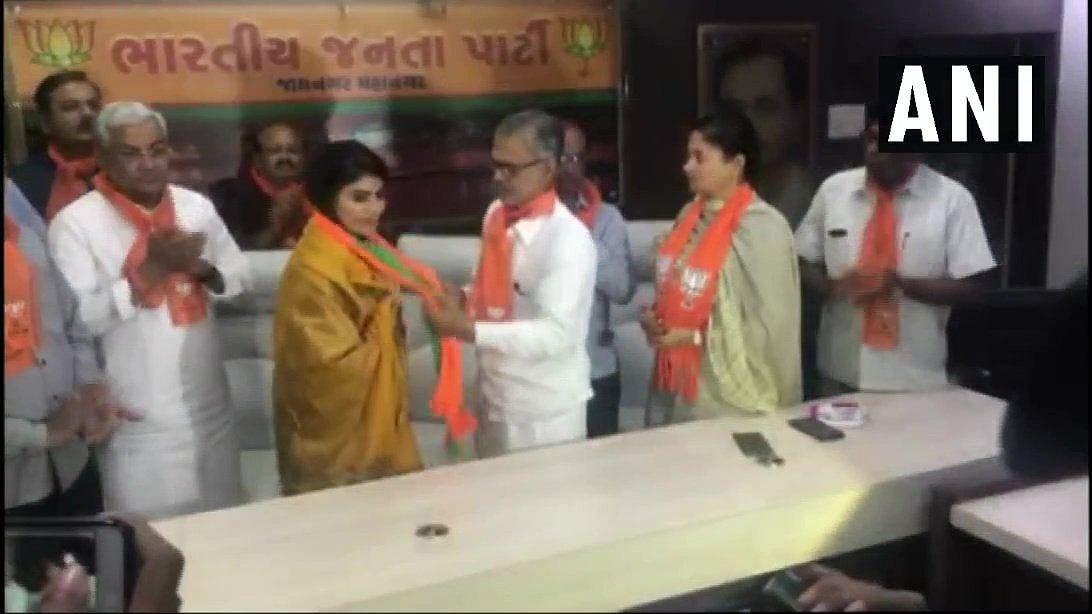 Ravindra jadejas elder sister and father joined the congress on sunday.