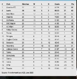 Serie a table 2019 20 juventus have been dominating the league since 8 years now. Italian serie a table. Kick off times are converted to your local pc time. I want to give something back to the fans now.