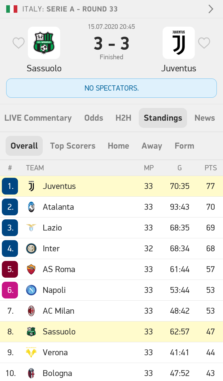 Serie a table 2020. Current 2020 21 serie a table rankings and other football divisions from sports mole mx23rw. See who scored the most goals cards shots and more here. Tables team mp w d l f a d p last 5 matches h2h. Italian serie a table 2020 21 italian serie a.